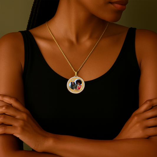Iced Out Photo Pendant w/ Cuban Chain