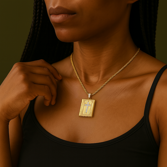 Iced Cross Photo Pendant Locket