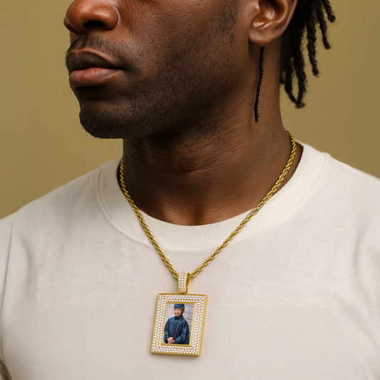 XL Iced Out Photo Pendant w/ Cuban Chain