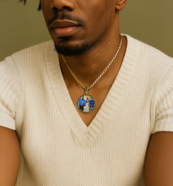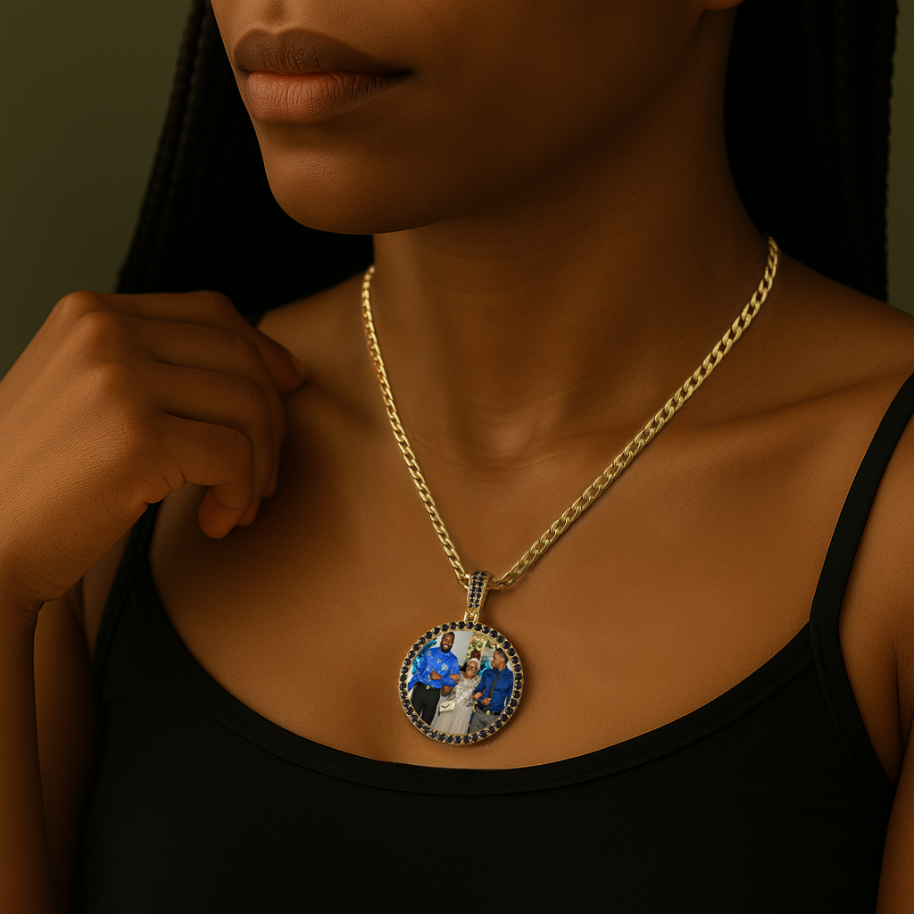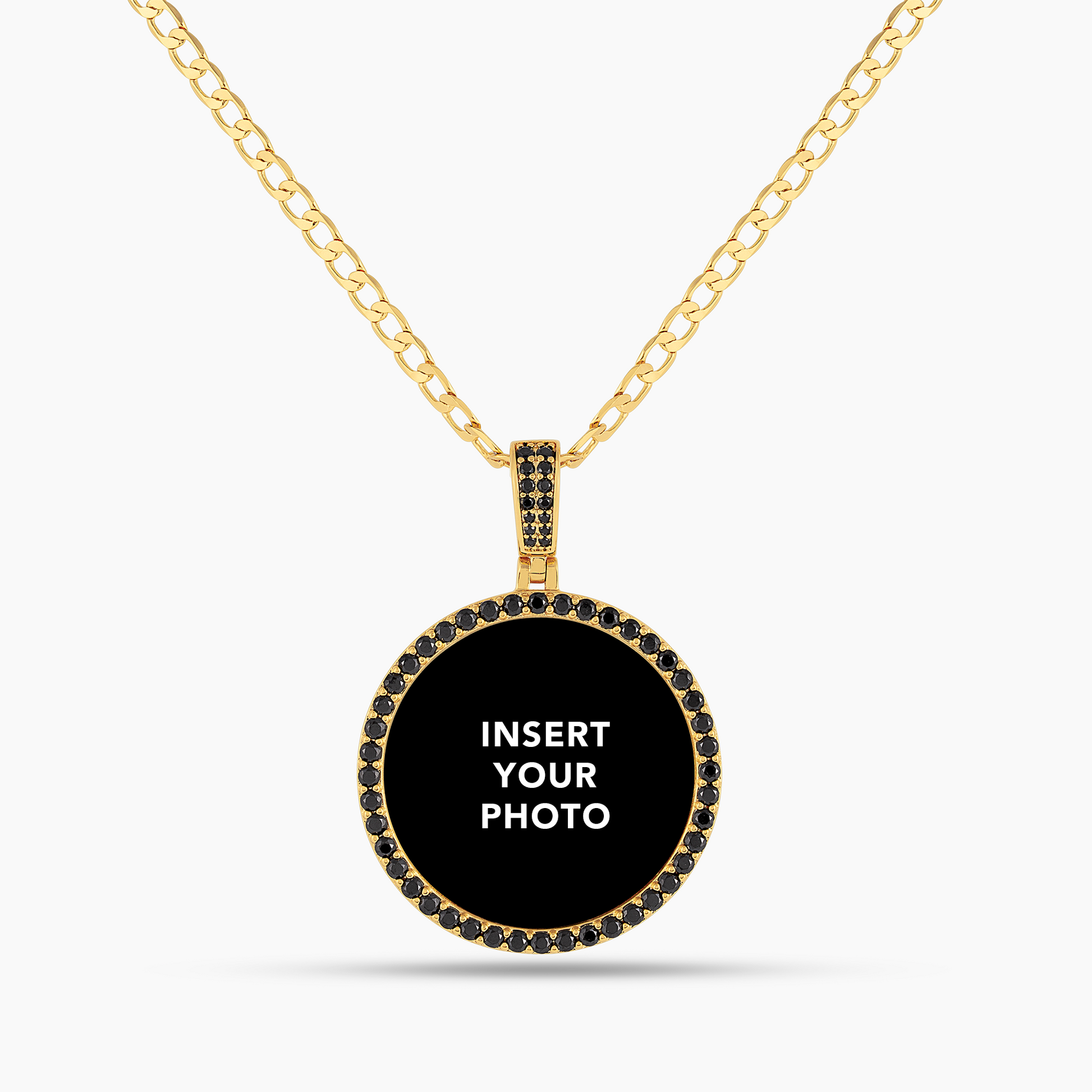 Strong, striking, unforgettable. The Black Onyx Photo Pendant is framed with hand-set black onyx stones, creating the perfect balance of bold style and personal meaning. Made with a brass base and finished in polished gold or silver plating, this pendant keeps your most important memory right where it belongs — close to you.