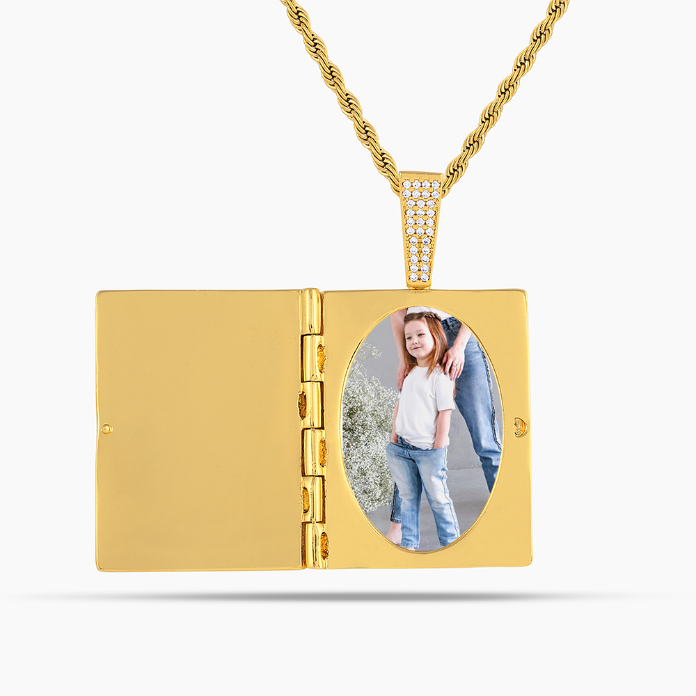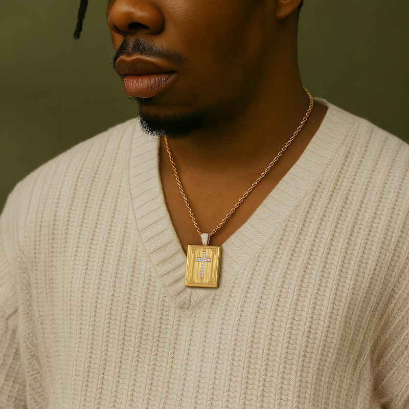 Elevate your style with the Iced Cross Photo Pendant Locket, available in elegant gold and silver finishes. This refined piece seamlessly blends meaningful personalization with timeless design, allowing you to keep cherished memories close while making a graceful statement. Its delicate craftsmanship and sparkling details enhance any outfit with subtle sophistication.
