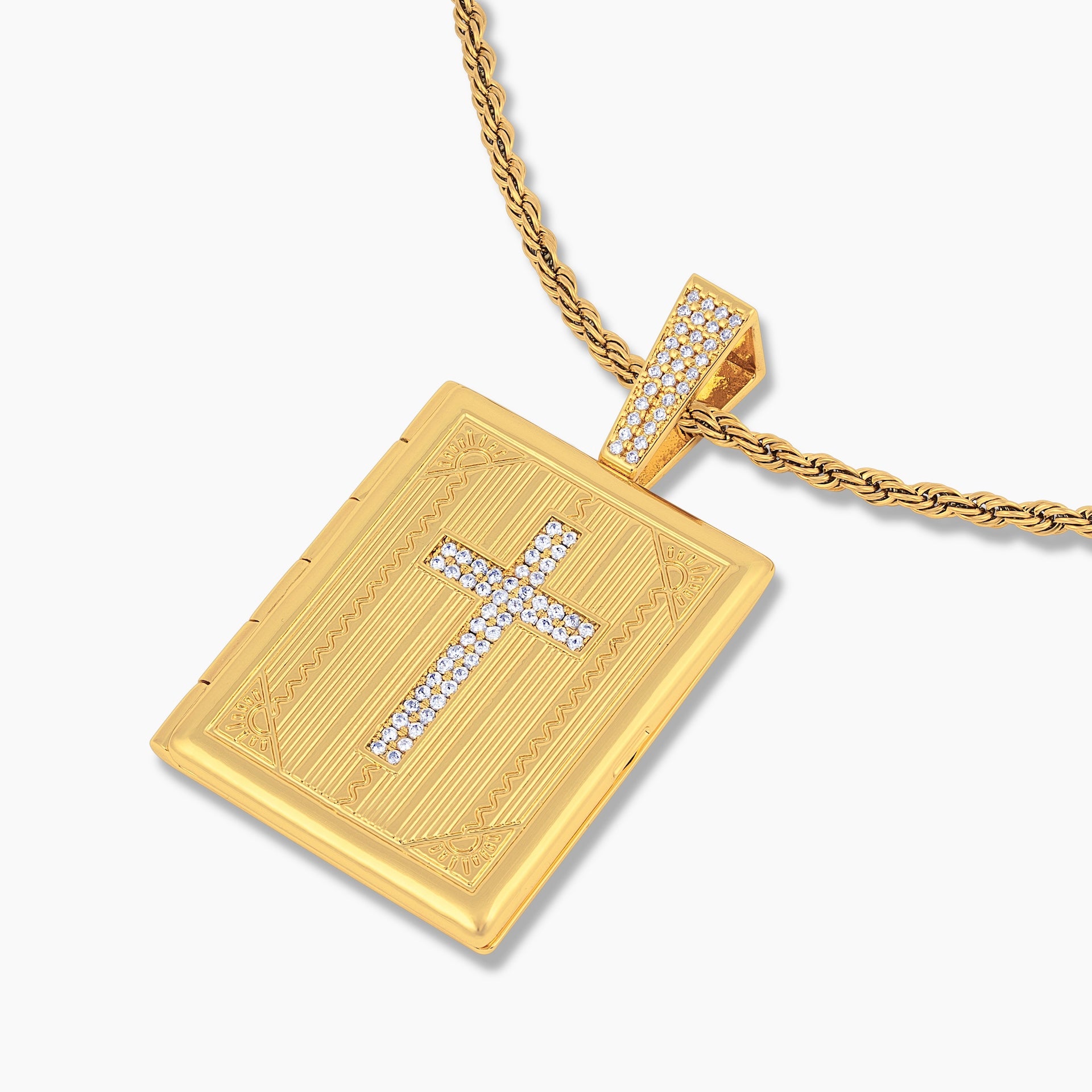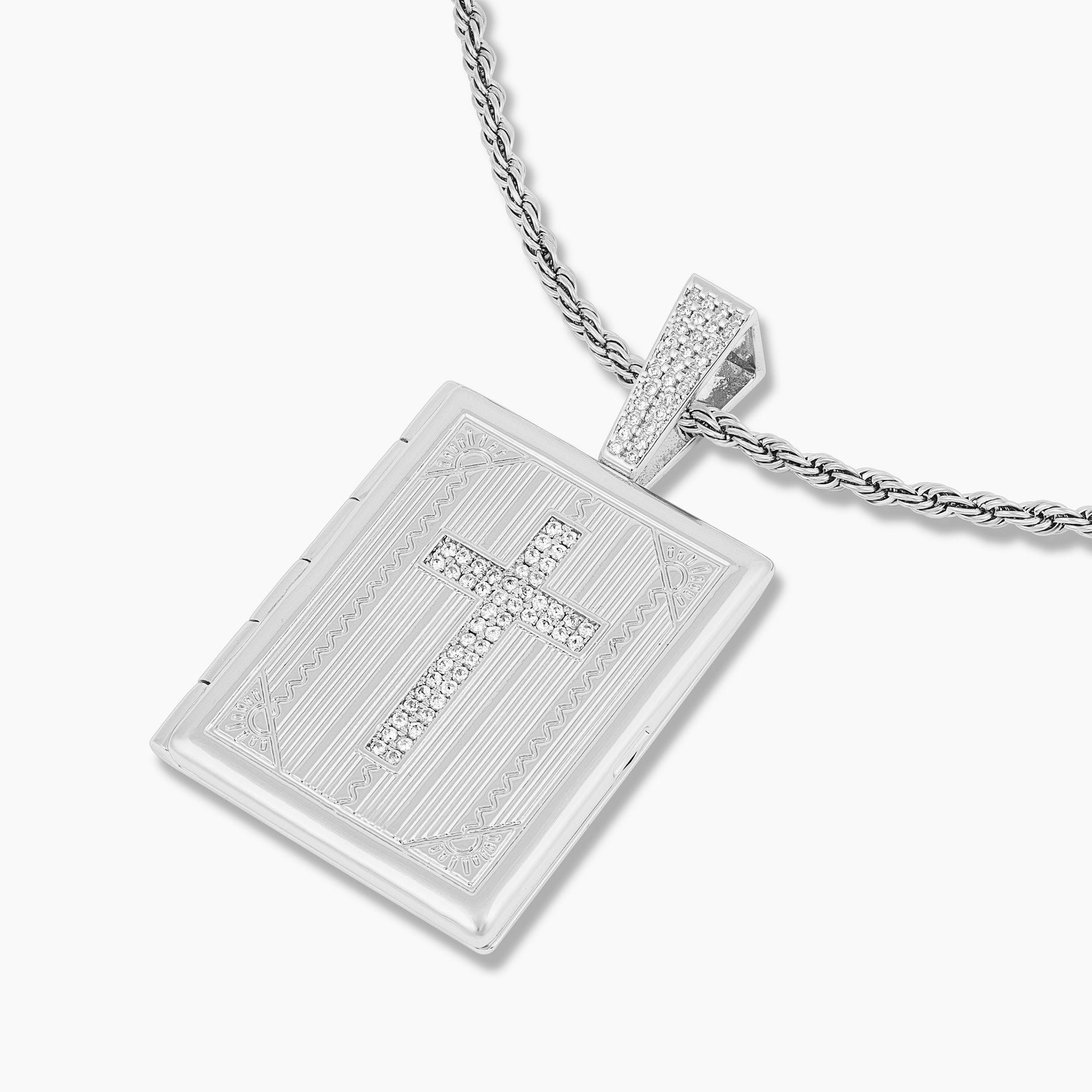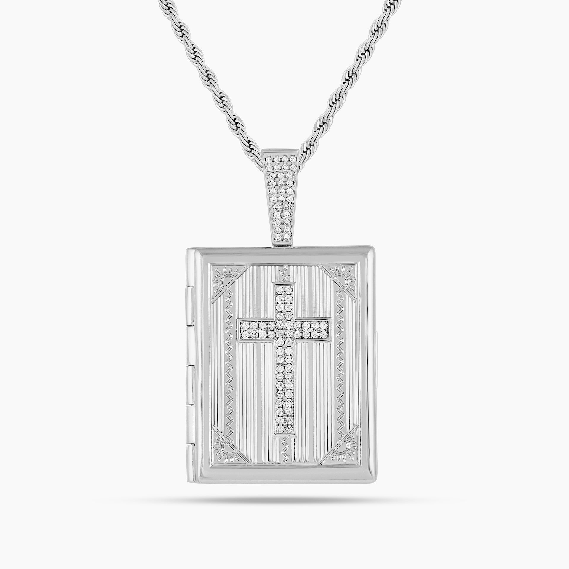 Iced Cross Photo Pendant Locket