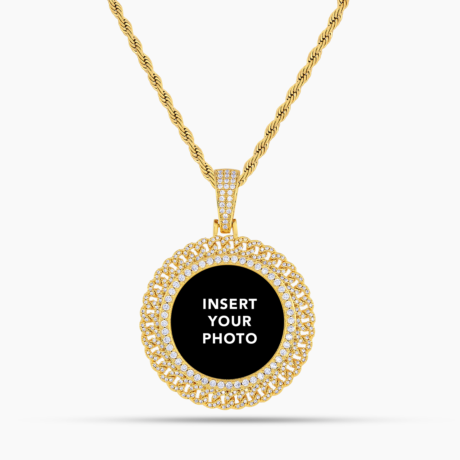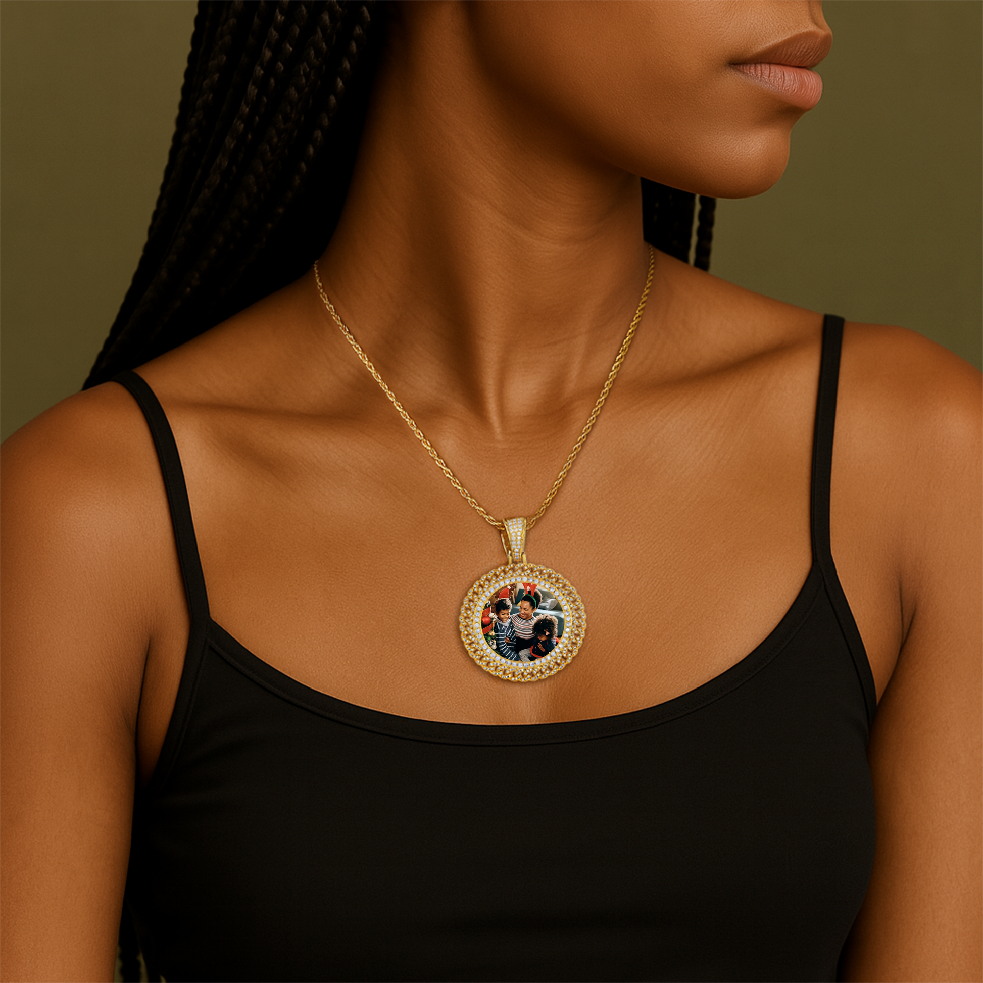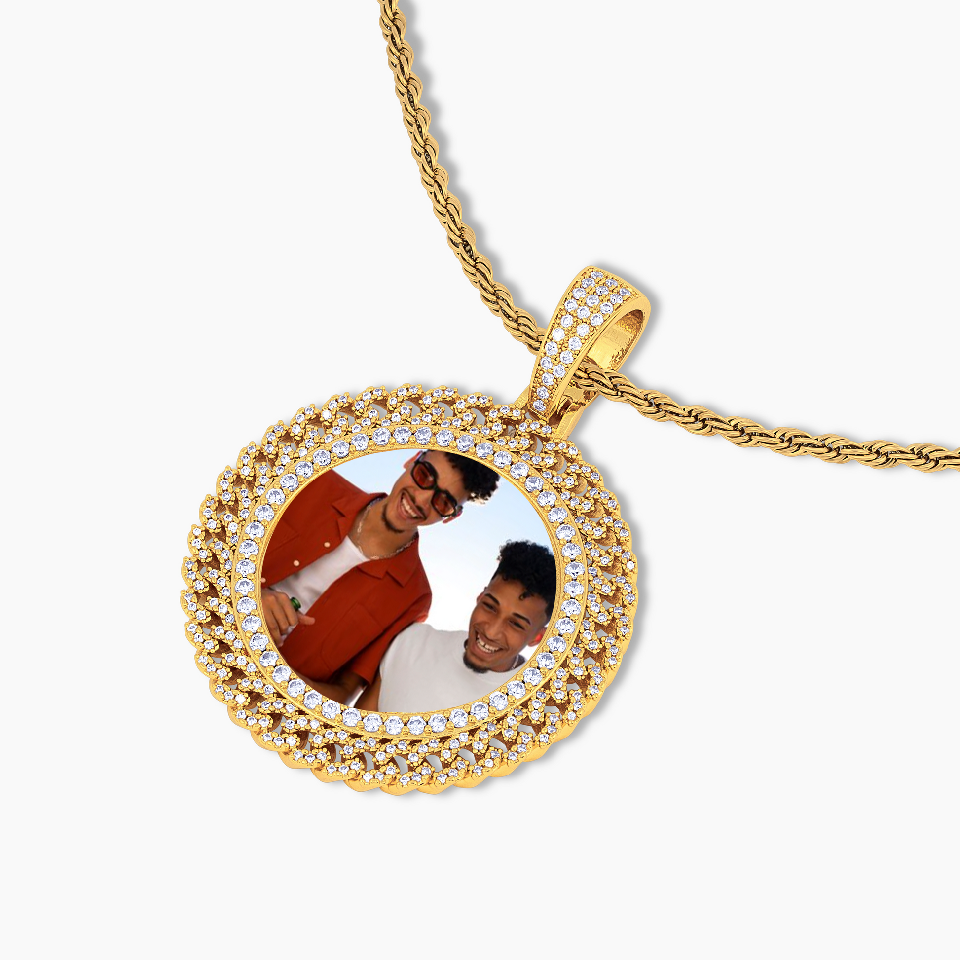 A pendant that blends elegance with meaning. The Iced Baguette Heart Photo Pendant showcases your photo inside a heart framed with baguette-cut cubic zirconia, offering a bold iced-out shine with a refined finish. Designed to celebrate love, memories, and the moments you’ll never forget.