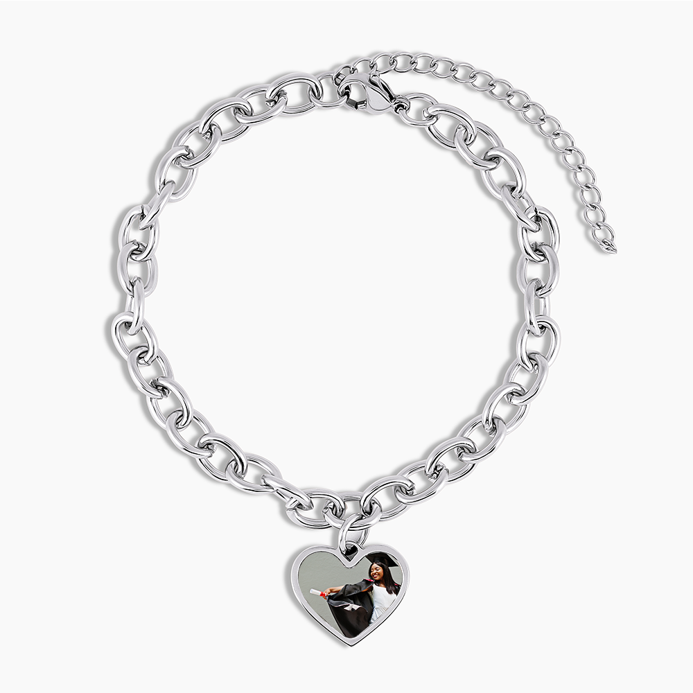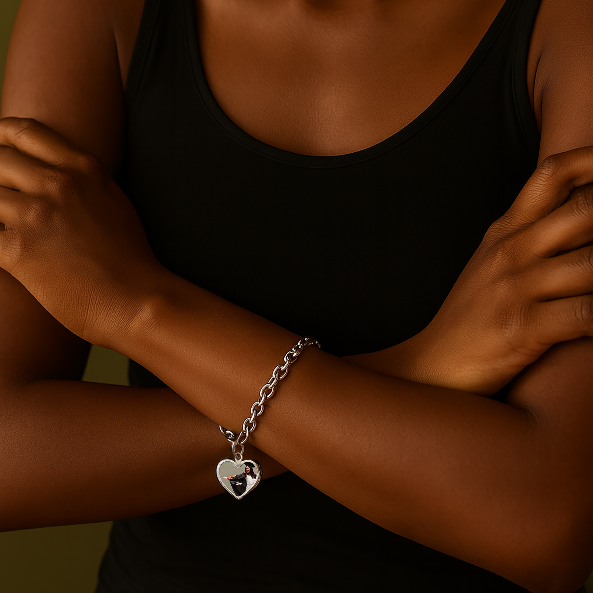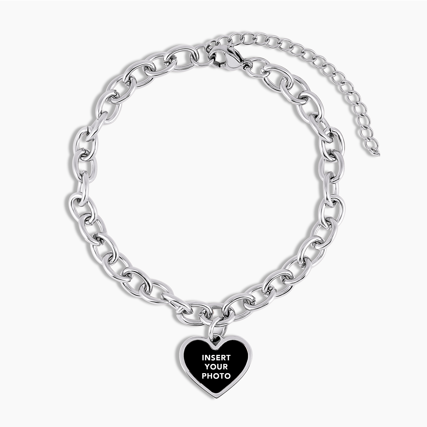 Bold style, personal meaning. The Love Link Photo Pendant Bracelet features a chunky chain design with a heart-shaped photo charm at the center. A piece that balances statement style with sentimental value, made to carry your memory wherever you go.