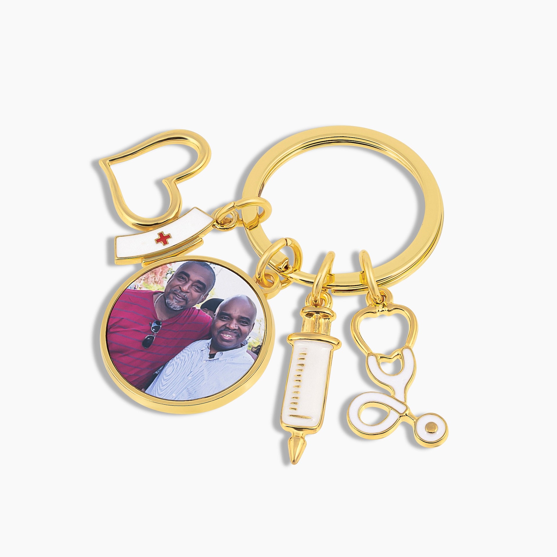 Carry your favorite moments close with the Sweet Beginnings Photo Keychain, featuring nursing-themed charms perfect for celebrating your care and compassion. This playful keepsake blends personal photos with charming symbols, making it a delightful accessory for nurses and loved ones alike.